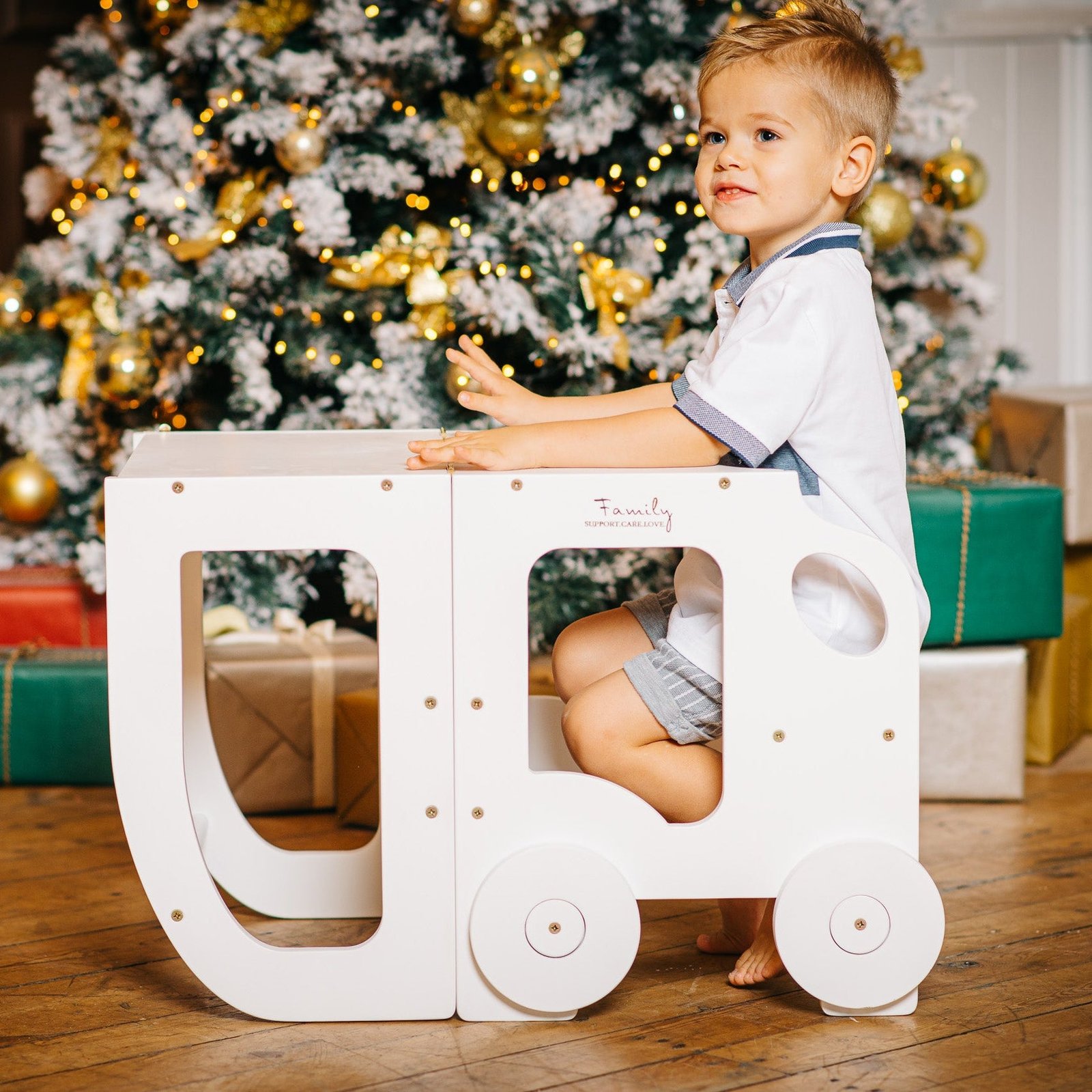 Montessori køkkentrappe: bord, stol og trappe i ét Denne montessori-inspirerede køkkentrapper, der nemt kan omdannes til bord og stol, er designet og skabt til læring, madlavning, klatring, siddeplads ved det store familiarbord samt spisning eller bare le